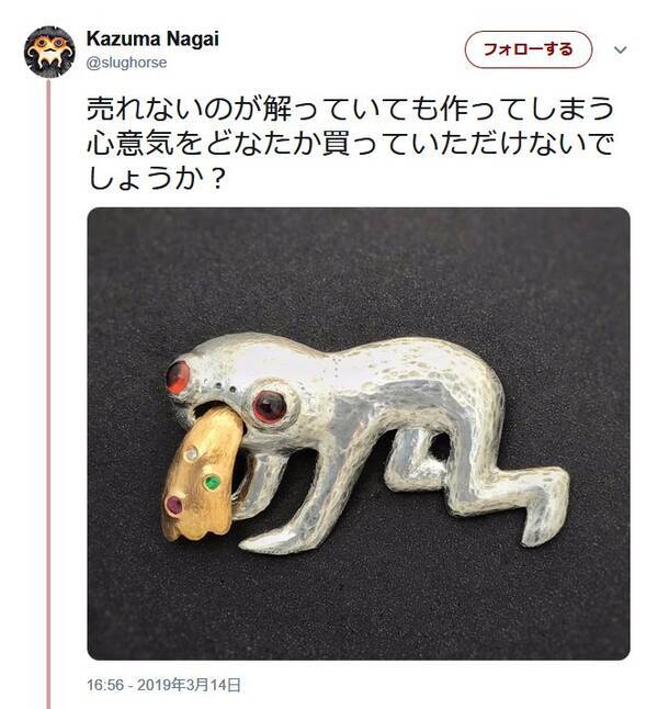 なんて豪華なゲロ 金 銀 宝石で作った 謎の何かが吐いてる ブローチに 可愛い 欲しい の声殺到 19年3月15日 エキサイトニュース
